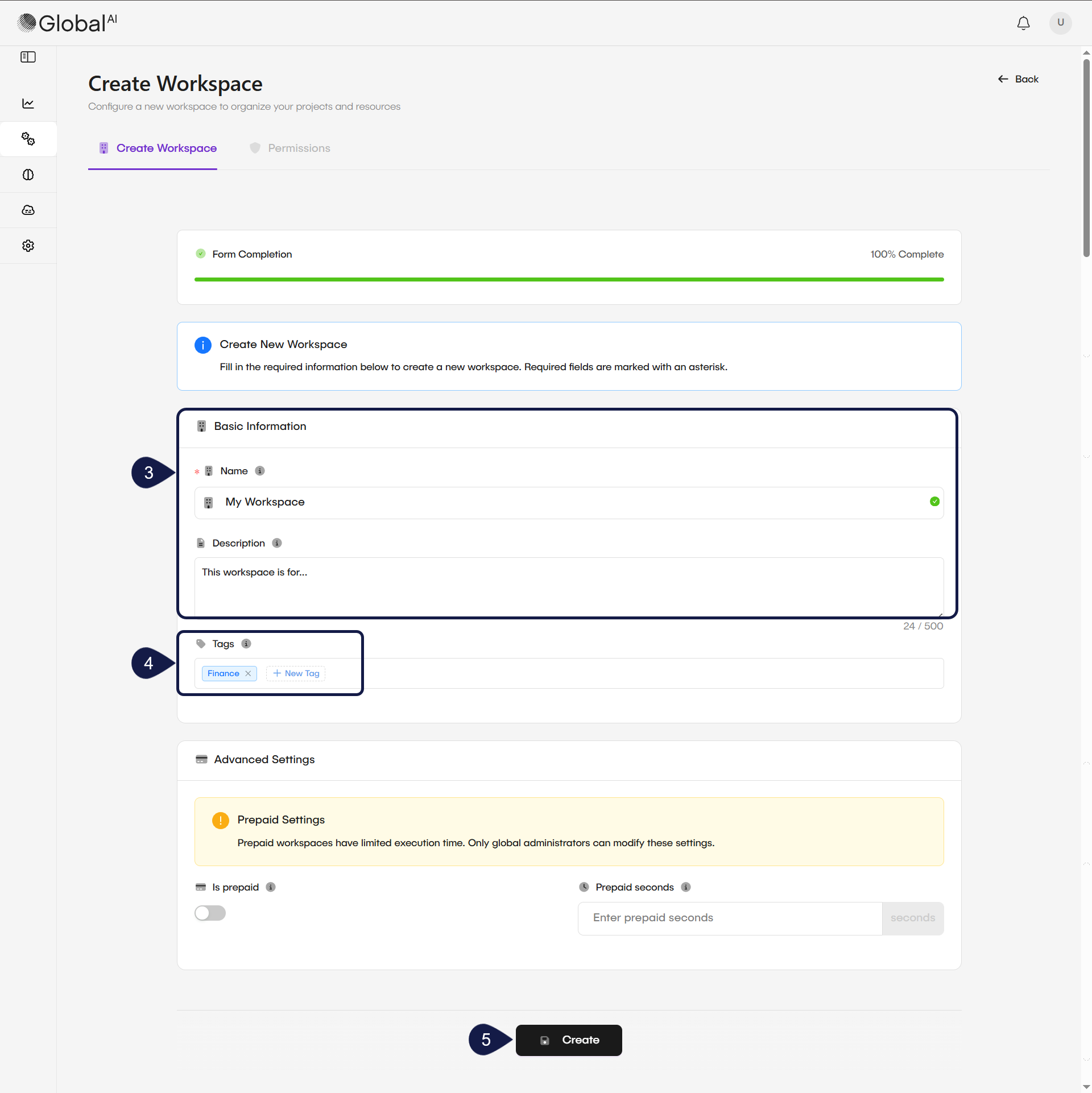 - Enter a Name and a Description for your Workspace. This helps other users understand its purpose.