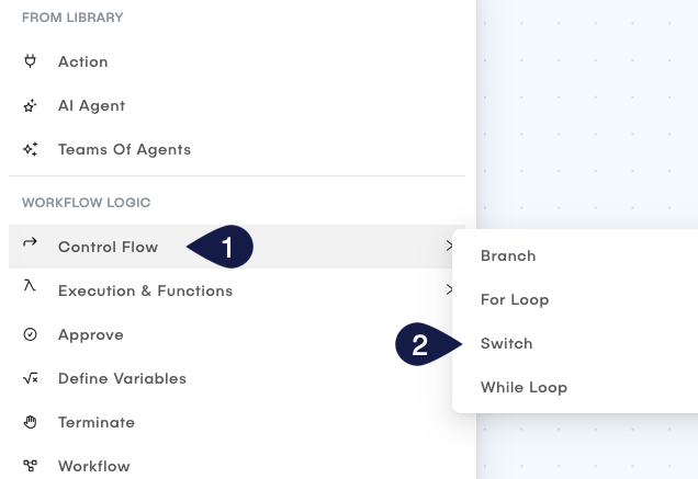 After adding the Switch control flow node, you will have multiple case nodes that you can connect to other nodes in your workflow based on the cases defined. For defining the flow, follow these steps: